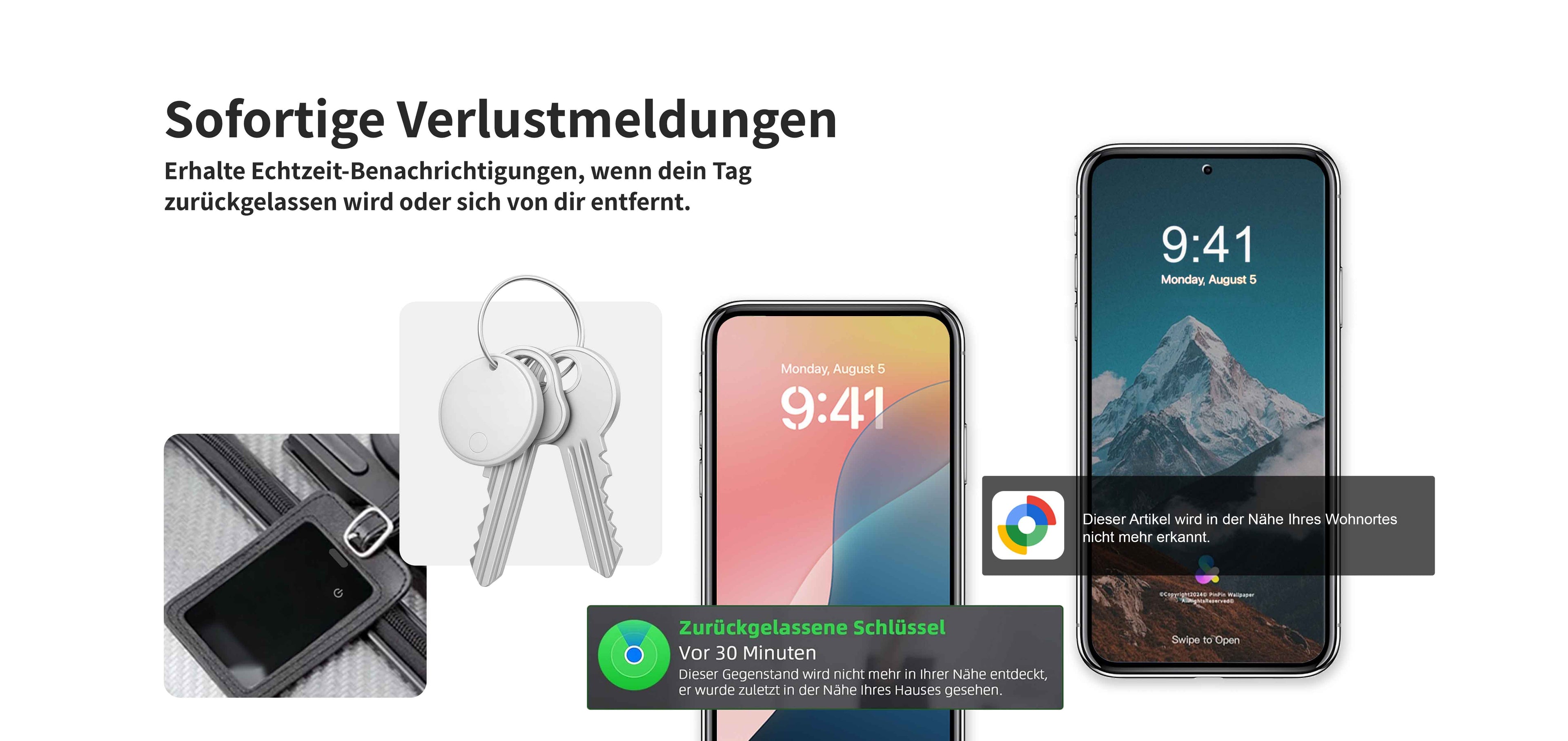 DualTag ist vielseitig: Du kannst damit nicht nur dein iPhone, iPad oder andere Apple-Geräte orten, sondern auch Schlüsselbunde, Geldbörsen, Taschen, Fahrräder oder sogar Haustiere überwachen. Durch die Integration in das Find My Netzwerk bist du immer auf dem neuesten Stand, wo sich deine wichtigen Gegenstände befinden. Das macht DualTag ideal für den Alltag, auf Reisen oder im Büro.
