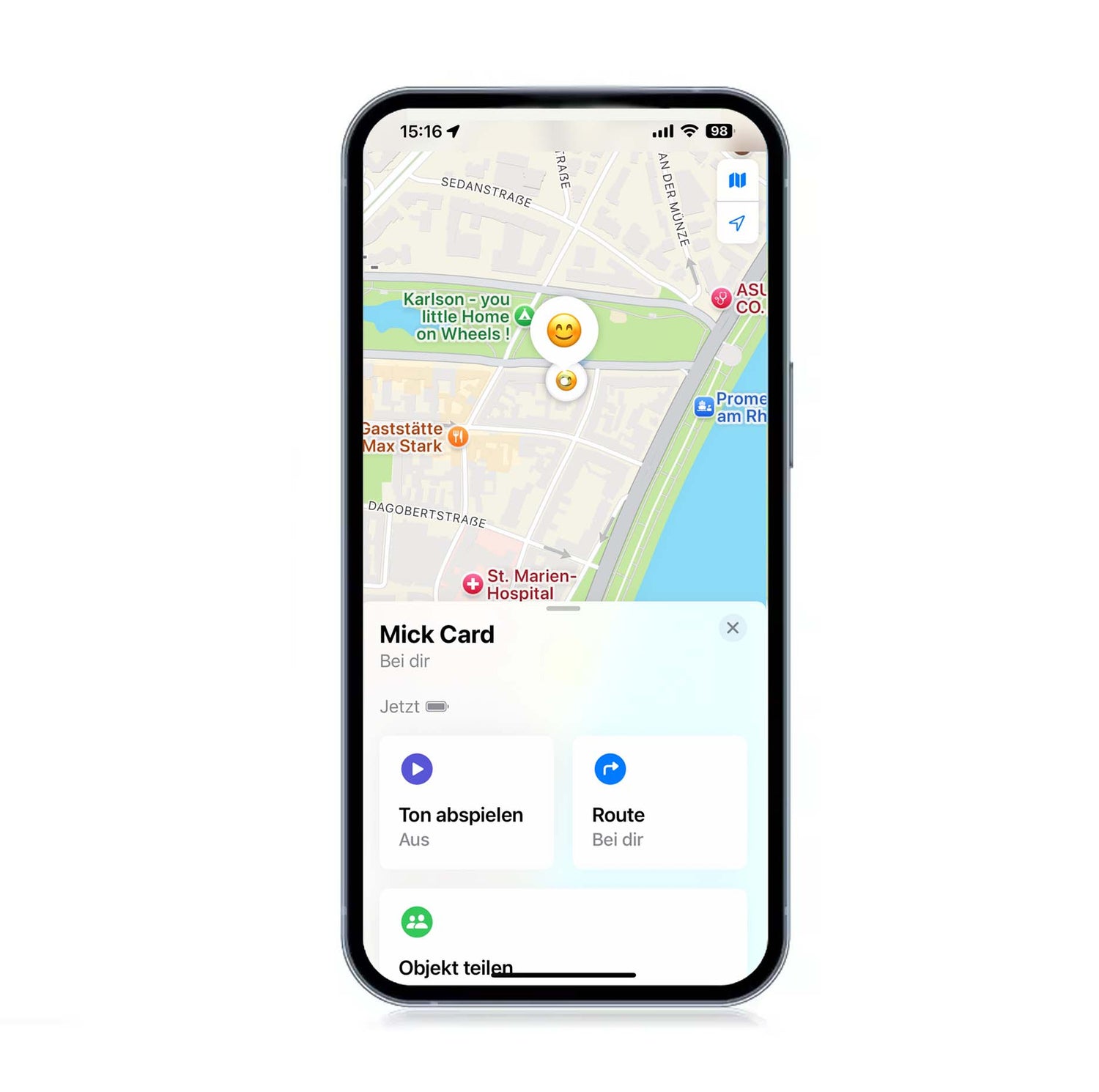 Der DualTag sendet ein sicheres, anonymes Bluetooth-Signal, das von Geräten im Find My-Netzwerk oder einem Find Hub automatisch erkannt wird. Über die Apple Find My App auf deinem iPhone oder iPad siehst du den Standort deines DualTags direkt auf der Karte. Die Ortung ist zuverlässig, verschlüsselt und schützt deine Privatsphäre. So funktioniert DualTag auf einfache Weise, ohne dass du technische Vorkenntnisse brauchst.