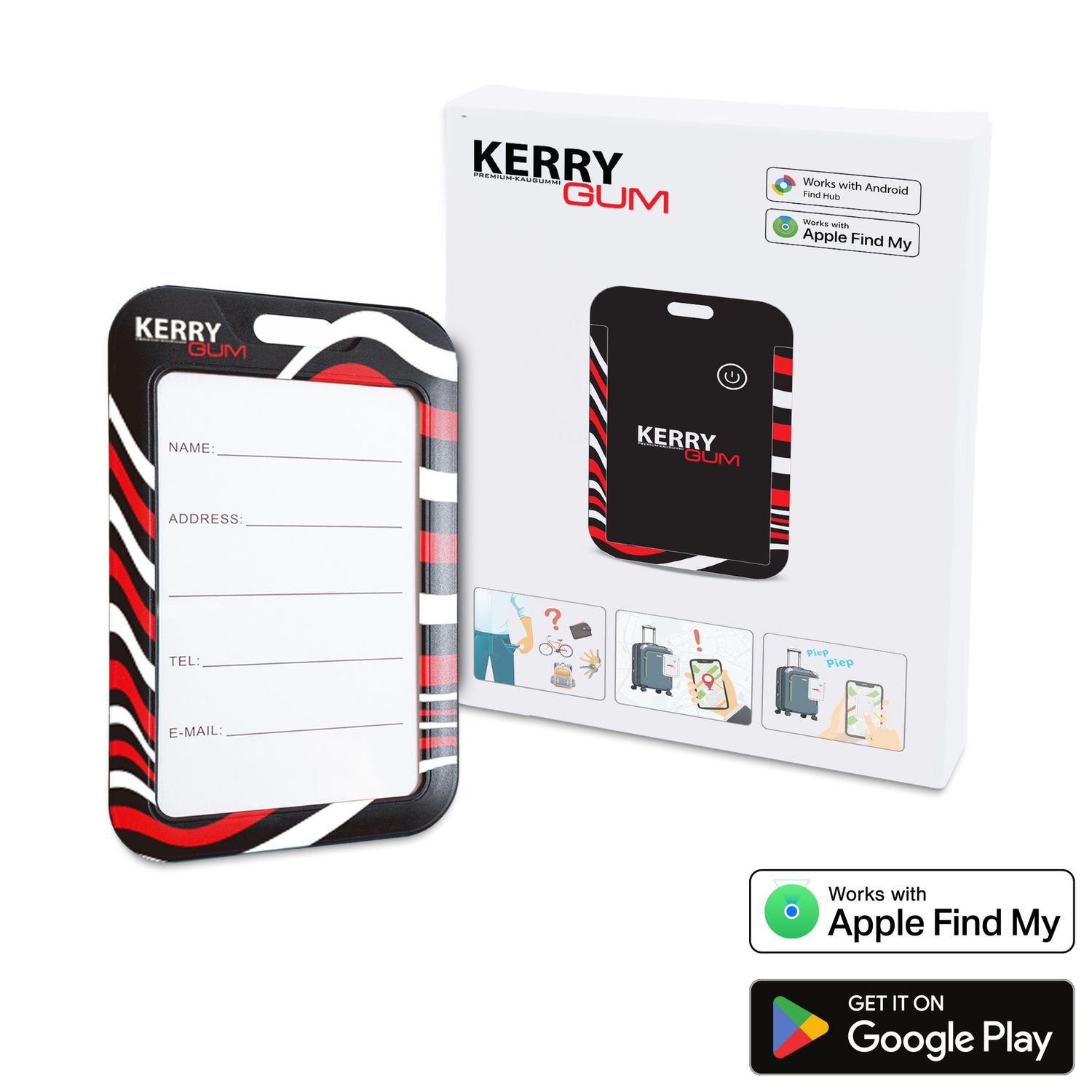 - Funktioniert mit: Google Find My Device & Apple Find My